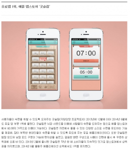 5위/ Monument Vallay/ ustwo. / 게임 / 퍼즐 게임 / $3.992위는 굿슬립 <자양강장 프로젝트>가 기록했다. 사용자가 언제 어디서나 숙면을 취할 수 있도록 도와주는 앱이다. 뇌파 사운드를 이용해 숙면을 유도한다는 방식으로, 다양한 자연의 소리로 구성돼 있으며 잠을 자고 일어날 수 있도록 알림기능도 지원한다.